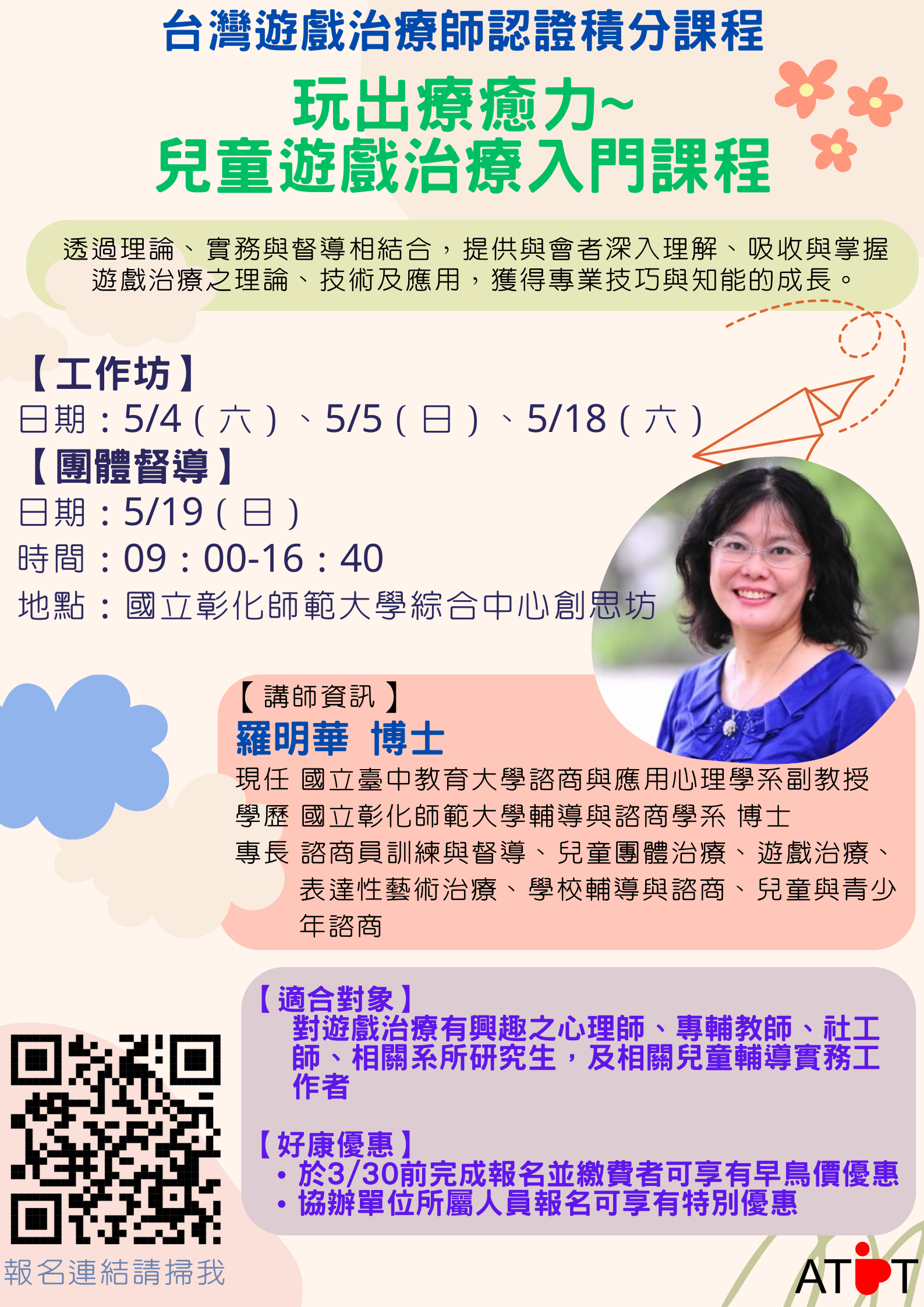 一、2024台灣遊戲治療師認證積分課程~玩出療癒力~兒童遊戲治療入門課程活動及時間。