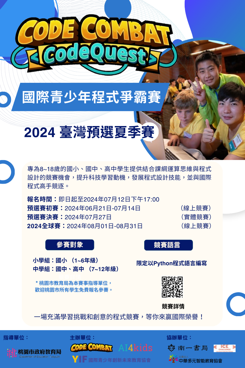(四)預選賽決賽:2024年7月27日13:00~7月27日17:00(實 體競賽), 競賽地點:桃園市立中壢商業高級中等學校